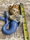 Vintage Norcrest Ceramic Mermaid Holding Fish Wall Plaque Figurine Decor, Euc