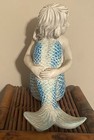 Sitting Mermaid Figurine Blue Tail / White Finish Coastal Nautical Beach Decor