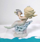 Vintage Mermaid & Dolphin Ocean Scene Figurine Sea Shell Beach House Home Decor