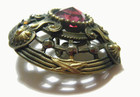 Antique Gesetzli Geschutzt Art Nouveau Brass Metal Buttons Amethyst Look Stone