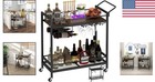 Bar Cart Serving Cart For Home Kitchen Drink Mobile With Wine Rack Glass Holder