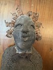 Handmade Primitive Clay & Metal Wall Sculpture 16.5” Folk Art Figure-rustic