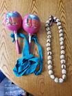 Vintage Pink Hand Painted Mexican Maracas Gourd Shaker Music Mexico Cozumel