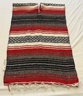 1980 Vintage Red Mexican Serape Sarape Saltillo Woven Blanket Poncho Shawl 72x50