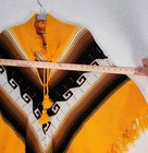 Vintage Poncho Mexican Orange Serape Cape Aztec Chevron Striped Fringe Small?