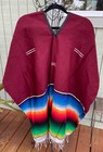 Vintage Burgundy Colorful Authentic Mexican Serape Poncho Woven Blanket 37x79