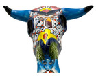 Talavera Cow Skull Mexican Pottery Wall Art Folk Art Home Decor Multicolor 12"