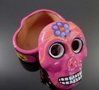 Dia De Los Muertos Skull Trinket Jewelry Box Pink Ceramic Mexican Folk Art