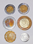 6 Circulating Mexico Coins: (2) 50 Centavos & 1,2,5,10, Pesos. Varied Dates.