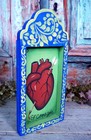 Heart Loteria Painting On Wood Retablo Handmade Hand Painted Mexican Folk Art