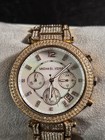 Michael Kors Parker Womens Watch Gold Tone 38mm Chronograph New Battery 6"