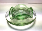 Vtg Green Art Glass Ruffled Ashtray Hand Blown Mid Century Modern Mcm