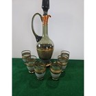 Mid Century Modern Gilt Purple Glass Wine Decanter & Six Glasses Mcm
