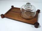 Vtg Mcm Luthje Danish Teak Wood Glass Condiment Set Mid Century Modern Danish