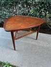 1960's Denmark Teak Guitar Pick End Table Woven Cane Bottom Mid Century Modern