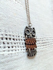 Vintage Metal Owl Mid Century Modern 1.25" Pendant 16"necklace Silvertone