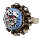 Vintage Middle Eastern Persian Enamel Bird Motif Sterling Silver Adjustable Ring