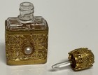 Tiny Vintage Miniature Perfume Bottle Gold Tone Cage Pearls Glass Dauber