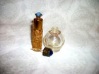French Miniature Perfume Bottles Jeweled Filigree Ormolu Blue Stones Vintage Pr