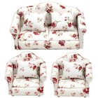 1/12 3ps Set Miniature Fabric Sofa Pillow Set Dollhouse Furniture Red Rose