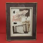 Vintage 80s Mixed Media Abstract Collage Art Wall Hanging Modern Signed Framed