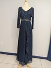 Jkara Navy Blue Sequin Long Sleeve Mother Of The Bride Dress Size 12
