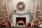 7×5ft Christmas Backdrop Photography Christmas Tree Wreath Fireplace Candle Xmas