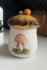 Vintage Ceramic Merry Mushroom Mini Canister Jar 4” Retro 1970s Kitchen Decor