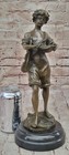Violin Player Art Sculpture Genuine Solid Bronze Figure W/ Marble Base Figure