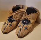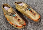 Old Antique Plains Native American Indian Beaded Moccasins Decorated Hide Shoes