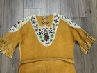 Vtg Native Americanstyle Buckskin Leather Dress Handmade Beaded Floral Fringe#39