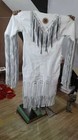 Women White Leather Powwow Dress: Native American Regalia With Fringed & Beaded