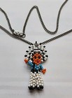 Handmade Beaded Native American Indian Figure Vintage Necklace Silvertone Beads