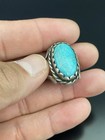 Turquoise Sz 7.5 Vintage 4g Sterling Silver Native American Navajo Oval Ring Wow