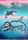 Original Inuit Watercolor Painting Signed Jacob - Killer Whale/orca