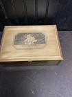 6-1/4" Wood Box With Antiqued Brass Humpback Whale Plate, Whale Gift Box