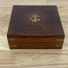 Naurical Wooden Trinket Box Brass Anchor Inlay Maritime Boats Vintage