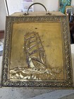 Antique Brass Metal Coal Wood Scuttle Box Galleon Ship Relief Decor W/ Insert!