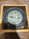 Vintage Marine Brass Compass In Wooden Box 5”x5”.