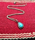 Small Navajo Sterling Silver Turquoise Pendant Necklace Teardrop Native American