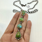 Vintage Sterling Silver Navajo Turquoise Pendant Necklace 21.41 Grams