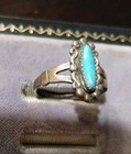 Vintage Navajo Native American Turquoise Sterling Silver Ring Size 6-1/2