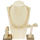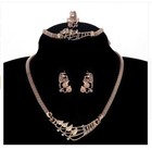 Gold Plated Crystal Necklace Bracelet Ring Earrings Wedding Fashion Jewelry Set