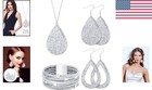 Silver Plated Bridal Wedding Cz Drop Necklace Bracelet Earrings Set For Women