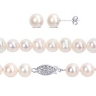 Amour Silvertone Cultured Freshwater Pearl Necklace, Bracelet & Earrings Set