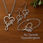 Faith Jewelry Stainless Steel Heart Necklace Bracelet Earrings Hypoallergenic