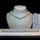 18k Platinum Plated Tennis Necklace Earrings Made W Swarovski Crystal Bridal Set