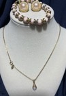 925 Silver Pearl Pendant Set Necklace Bracelet Earrings Bridal Wedding