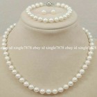 8/10/12mm South Sea Shell Pearl Beads Necklace Bracelet Earrings Set 18/7.5''