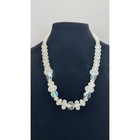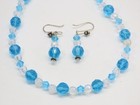 Beaded Necklace Earrings Set Blue Clear Crystal Glass Faceted Pierced D2590